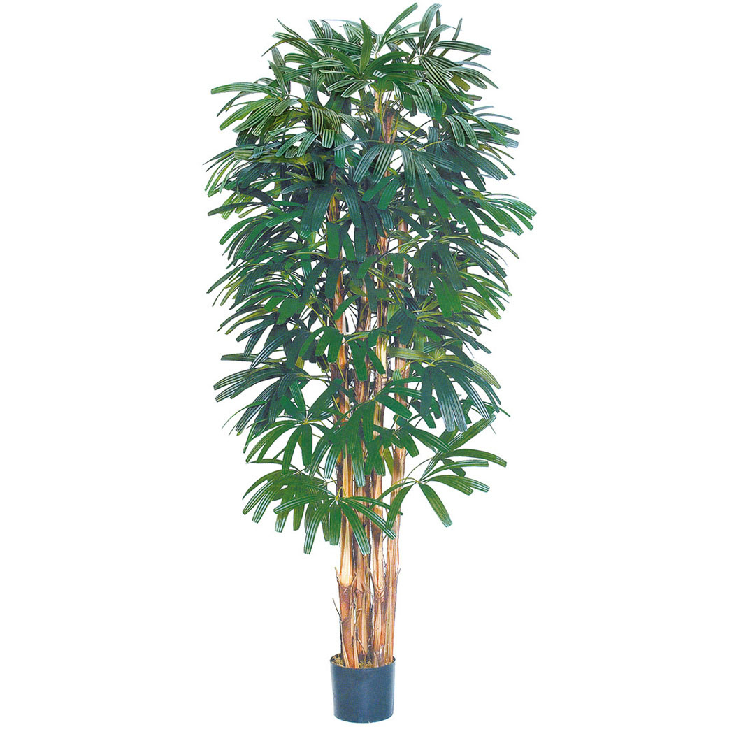 Artificial Palms are a fun way to add a tropical feel to any decor. An indoor silk palm is perfect to decorate your living room or office lobby. Our 7 foot Raphis Palm tree with Natural Trunks is potted in a plastic pot which you can install into the decorative container of your choice.