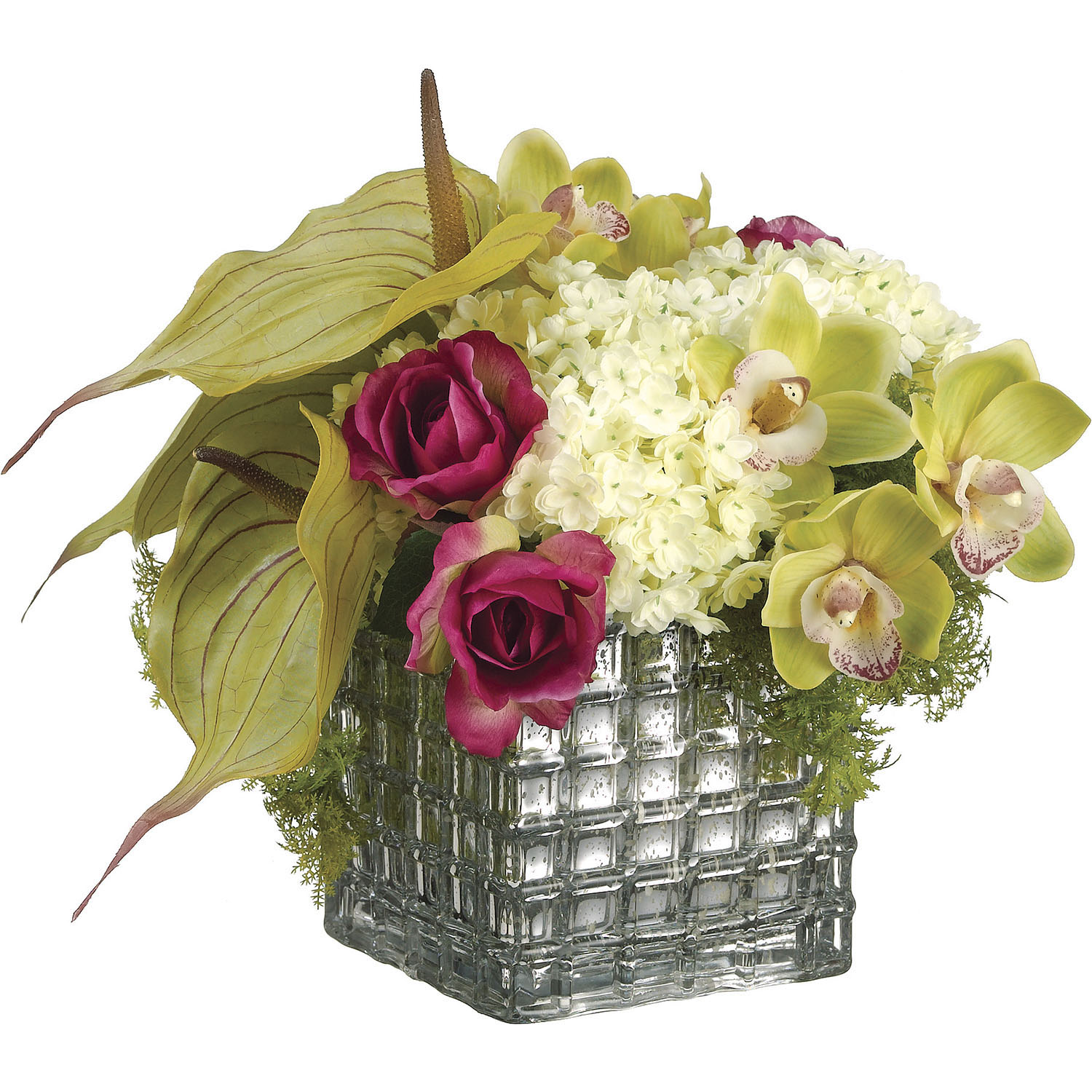 14 inch Hydrangeas, Roses, and Anthuriums in SquareContainer